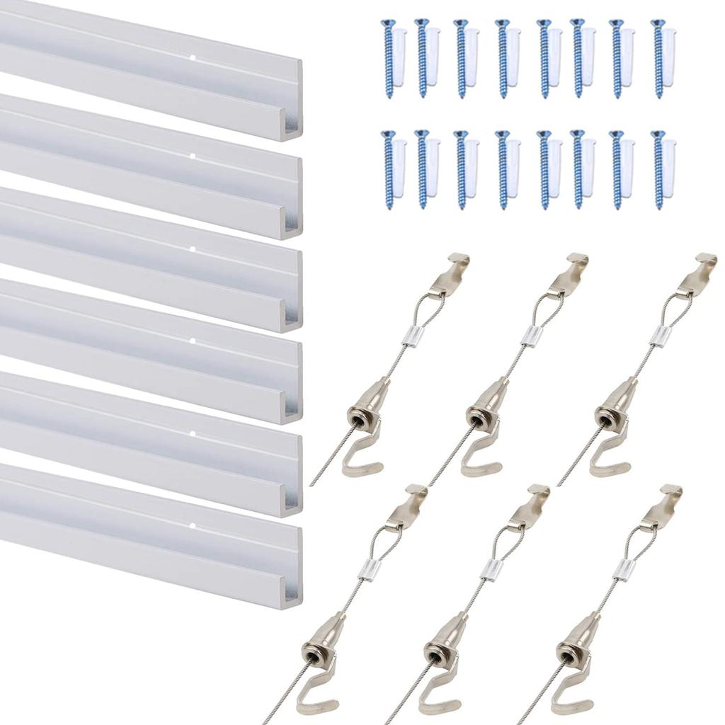 L Type Picture Rail Set Picture Rail Stainless Steel Wire for Wall Display Picture Frame Painting Click Type 2.0m-4.0m + Rail/White (L 3m)