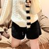 Plüsch-Shorts mit hoher Taille und weitem Bein für Damen Winter 2025