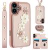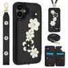 Für iPhone 16 Plus Hülle Kartenfächer Lederbeschichtetes TPU Blume Handyhülle