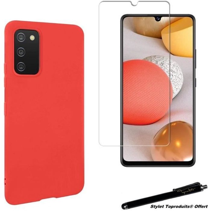 Coque de protection - Toproduits® - Galaxy A02S - Rouge - Souple - Verre trempé inclus