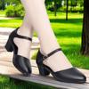 New solid color middle heel women's sandals One buckle thick heel bag head women's sandals fashionable summer clothes.