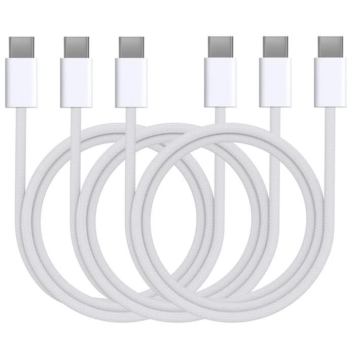 Lot 3 Cables pour iPhone 16 / 16 PLUS / 16 PRO / 16 PRO MAX - Câble USB-C USB-C nylon tressé 1 mètre Phonillico®