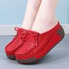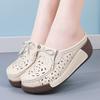 Damen Sandalen mit Höhenabsatz Plateau Loafers Rot Slipper zum Hineinschlüpfen Lässige Clogs Blume Leder Weiße Schuhe für Mutter