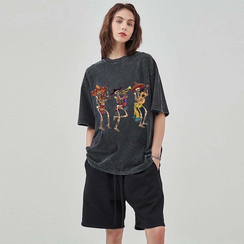 Musik Totenkopf Print Günstig Damen Waschen T-Shirt Locker Übergroß Paar Kurzarm Street Hip Hop Oberteil Teen T-Shirts