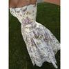 Vintage Blumenmuster High Waist Plissee Maxi Kleid Damen Sexy Rückenfrei Ärmellos Lange Kleider Sommer Sexy Vocation Party Robe