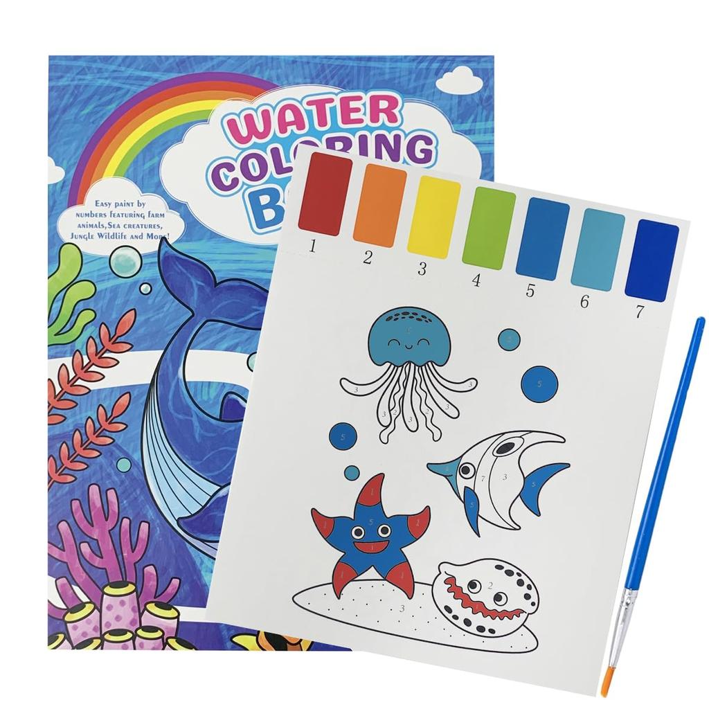 TAETOE Malbuch für Kinder mit Malen Wasserfarbe Alter Malerei Basteln Geburtstag Geeignet für Erwachsene und Freizeit Meeresleben Illustration Pinsel,
