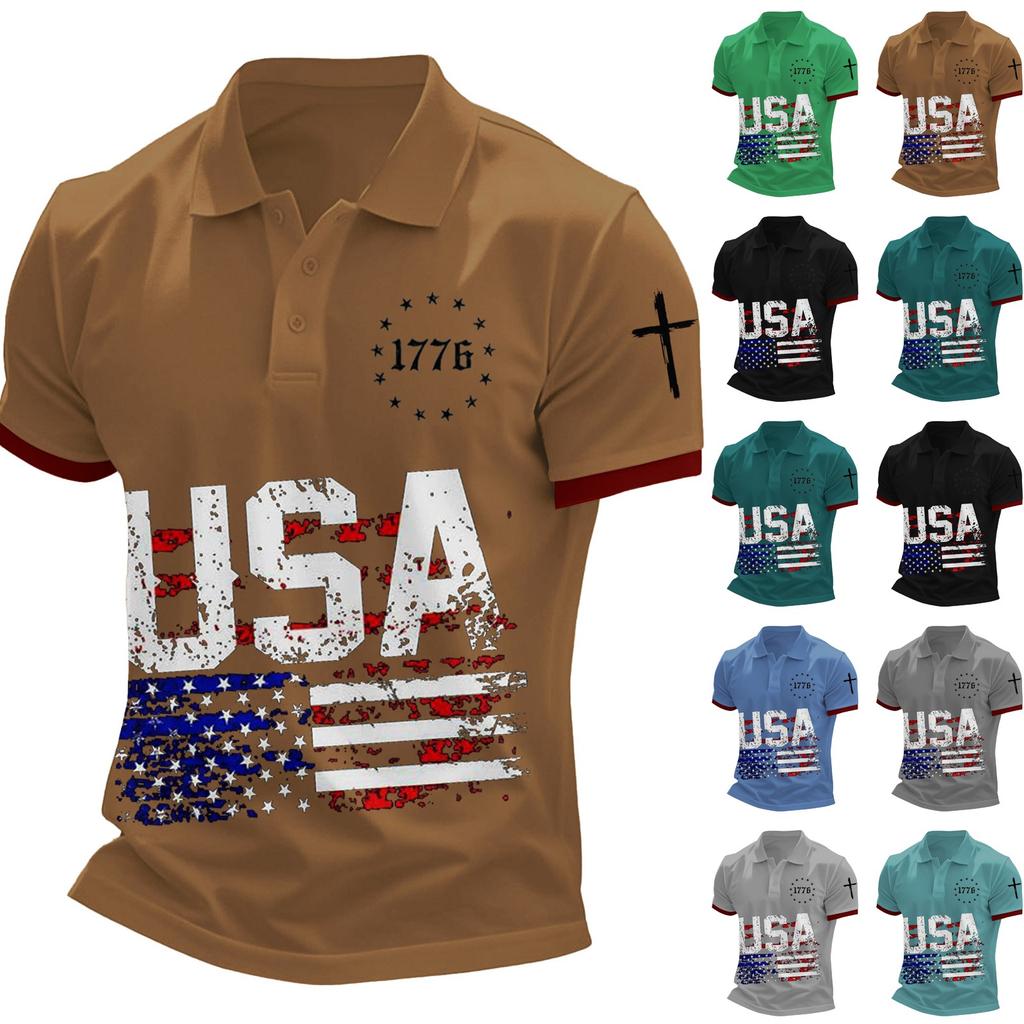 Modisches Herren-Freizeit-Oberteil mit Unabhängigkeitstag-Print am Hals und kurzen Ärmeln