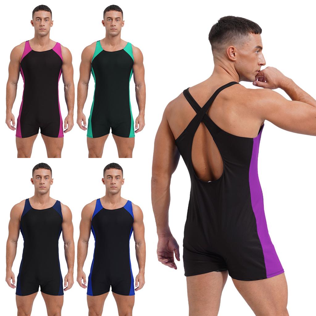 Herren U-Ausschnitt Badeanzug Überkreuzte Träger Schnelltrocknender Body Kontrastbesätze für Pool Strand