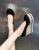 Französische flache Mund kleine Keilabsatz High Heels Damen 2025 Frühling neu Wildleder wasserdicht Tisch dicke Sohle Mode Einzelne Schuhe