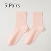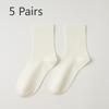 5 Pairs Mid-calf Socks Spring and Summer Cotton Pop Monthly Socks Anti-pilling Boneless Socks Women Dopamine Coloured White Student Socks
