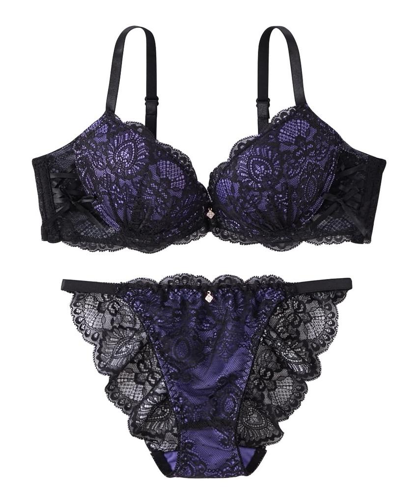 Inner High Side Bra and Shorts [Nissen] Women's Set, Lace-Up Set, Purple, G90/3L