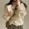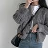 Herbst und Winter Neuer Pullover Damen Einfarbig Senior Mode Lässiger Stil V-Ausschnitt Hanfmuster Strickjacke Senior Sense Mantel