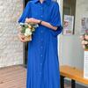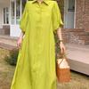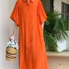 Einfarbiges, einreihiges Revers, langes Kleid mit halben Blasenärmeln für lockere Damenkleidung, Frühlings- und Sommerhemdkleid