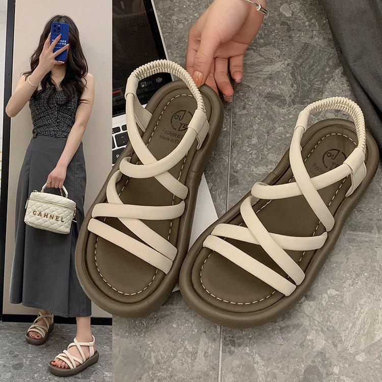 Rom mit Römersandalen Damen 2025 Sommer neu offen vielseitig Strand Plateau superweich schwarz Außen-Sandalen