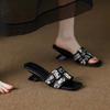 French slippers women's summer outer wear sandals high heels 2025 small fragrant style square head one-word drag open-toed retro sandals tide