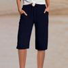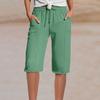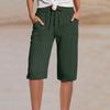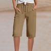 Damen Sommer Leinen Shorts - Elastischer Bund Falten Tasche Lässige Caprihosen