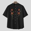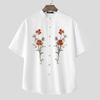 INCERUN Summer Men Collarless Short Sleeve Floral Print Casual Loose Shirts