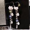 Vielseitige Damen-Ohrringe mit roter Rose, Strass und Quaste
