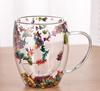 350ml Doppelwandige Glasbecher Tasse mit Trockenblumenfüllung mit Henkeln Küchenzubehör WLL2148