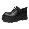 British style round head small leather shoes men's 2025 autumn and winter new Japanese thick heel big head lace-up single shoes 6112-A