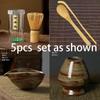 4-5-tlg. handgemachtes Matcha-Teeset aus grober Keramik für zu Hause, Werkzeugständer-Set, Schüssel, Schneebesen, Schaufel, Geschenkzeremonie, traditionelles japanisches Zubehör