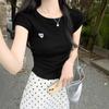 Koreanische Version Einfaches besticktes Rundhals Slim Kurzarm T-Shirt für Mädchen Im Sommer Neues klein geschnittenes Design Top