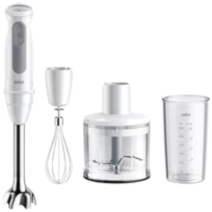 Mixeur plongeant - braun - multiquick 5 - 1000 w - 21 vitesses - gobelet 600 ml - mini hachoir - fouet - blanc