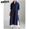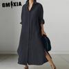 GMXIA Damen lässiges lockeres Hemdkleid mit Umlegekragen und langen Ärmeln