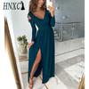 HNXC Maxikleid Einfarbig Großer Saum Damen Elegant Unregelmäßige Taille Reise