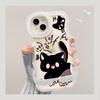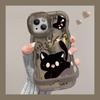 Anwendbar auf Apple 15 Handyhülle IPhone 14 Cartoon Schwarze Katze 13 Wellenkante 12 Unsichtbarer Doppelständer Sommer