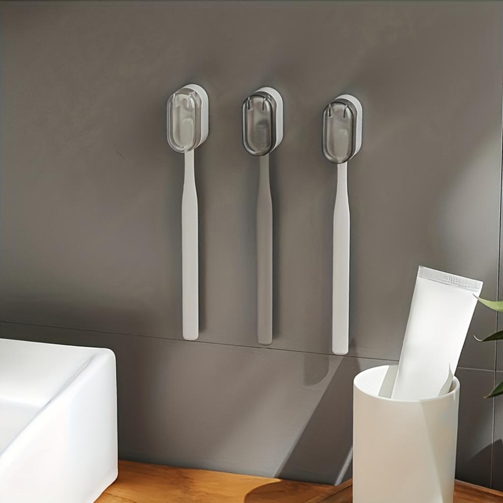 3 Stück Wandmontierter Zahnbürstenhalter mit Abdeckung - Staubdichter Zahnbürstenständer aus Kunststoff - Stanzfreier Badezimmer-Zahnbürstenhänger - Nein