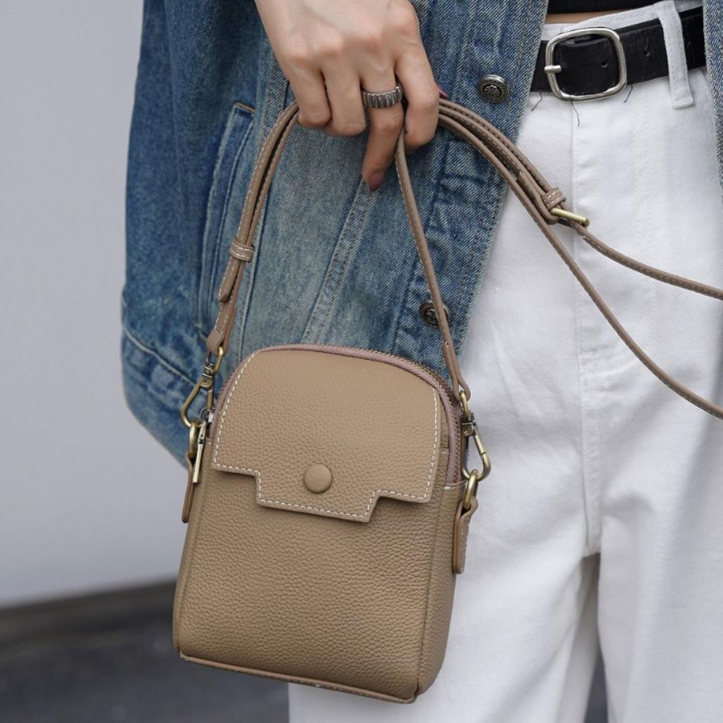 Rindsleder Nische Luxustasche Damentasche Handgriff Handtasche Schlichte Damen Handy Wechselhülle