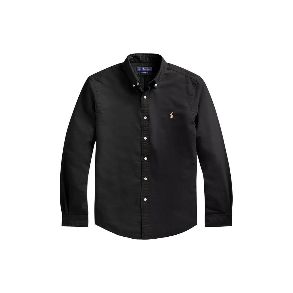 Polo Ralph Lauren Ss23 Einfarbiges Logo Besticktes Langarmhemd Herrenhemden Schwarz 710767828-001