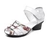 Sommer Fischmaul Damen Sandalen Retro Ethnischer Stil Dicke Absätze Mama Schuhe Weichsohlige Einzelne Schuhe Rindsleder Atmungsaktiv Hohle Schuhe