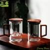 GIANXI 400ml Glas Teetasse Walnuss Verbrühschutzgriff Verdickte Tasse Chinesisches Ferngebirgsdesign Hohe Borosilikatglas Teetasse
