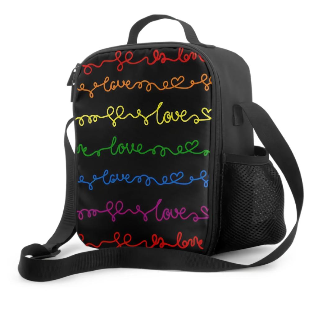 Liebe Wort und Herzen Lunchbox Isolierte Mahlzeitentasche Progress Lgbt Pride Symbol Lunchtasche Lebensmittelbehälter für Schule Reise Picknick