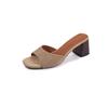 Krazing Pot Lammfell Wildleder Pantoletten Sommer Größe 40 Hausschuhe für Draußen Flip Flops Dicke Hohe Absätze Damen Peeptoe Sandalen
