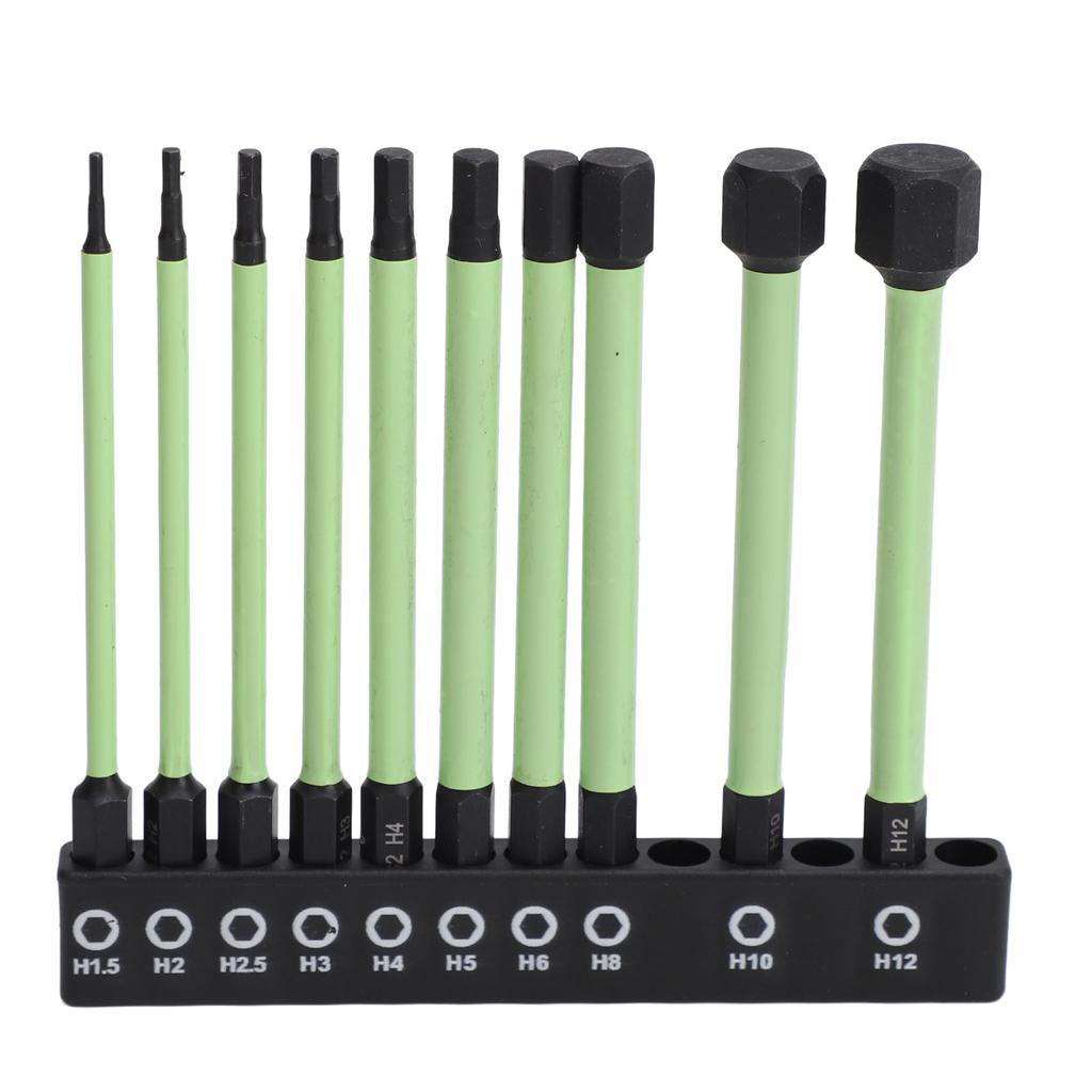 10 STÜCKE Sechskant-Schraubenschlüssel Bohrerbit S2 Stahl Langlebiger Gebrauch Stark Magnetisch Rostfrei Grün Pneumatisch