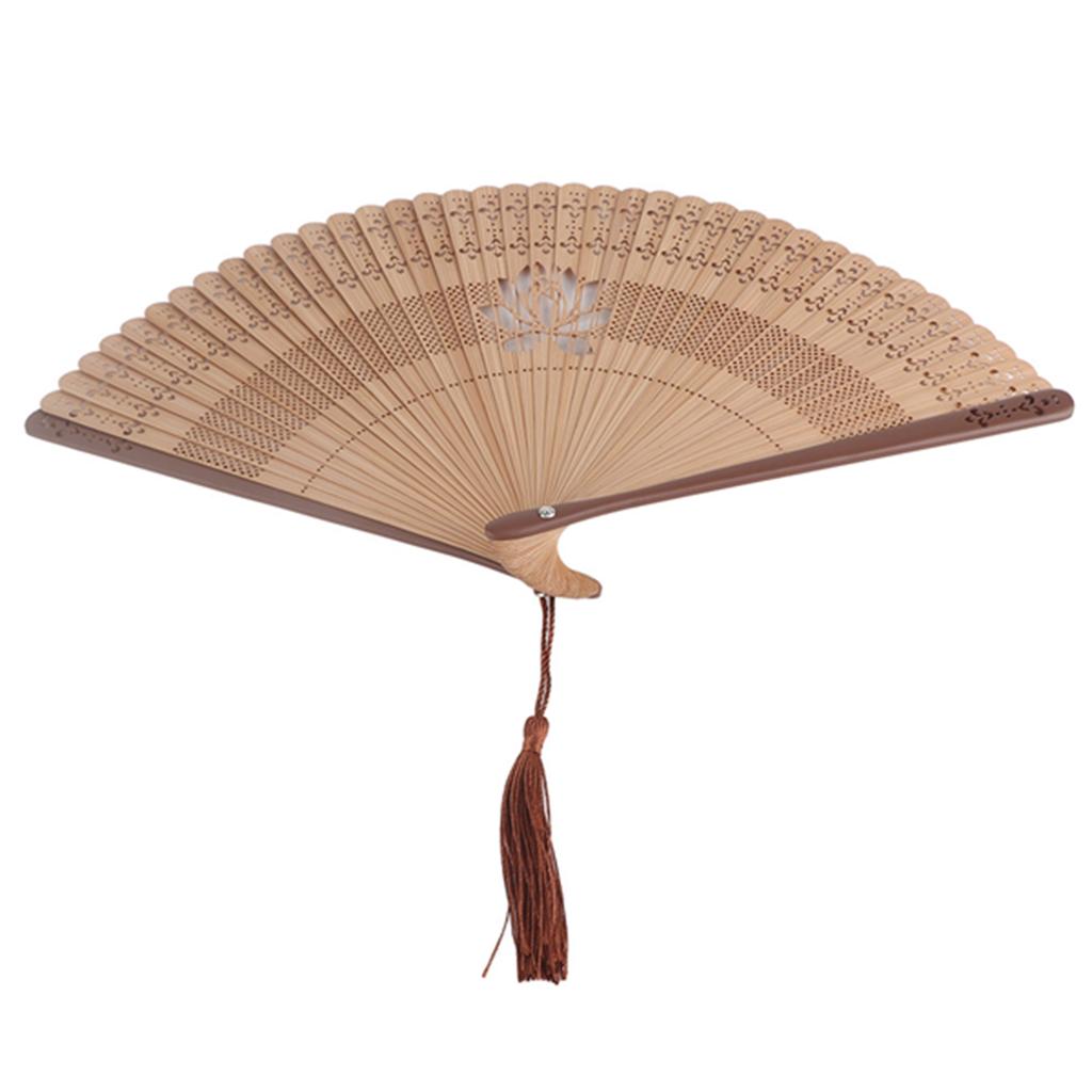 Faltfächer aus Bambus mit hohlen Handquasten Sommer Heißer Tag Kühlwerkzeug DekorationBraun