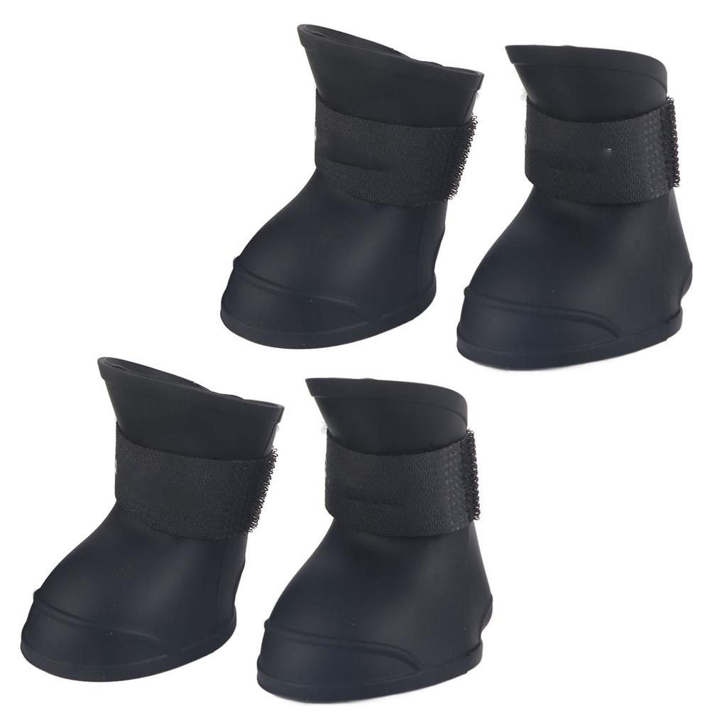 4 Stück Silikon Haustier Hund Niedlich Wasserdicht Stiefel Rutschfest Schützend Regenschuhe(L Schwarz)