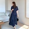 Ein stilvolles Revers-Damenkleid mit einer Schleife, die die Taille betont und schlanker macht