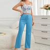 Sommer Sling Pyjama Set Damen Hose und Ärmelloses Oberteil Set Rundhals Nachtwäsche Mädchen Blumenmuster Loungewear Homewear Pyjamas