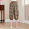 Sommer Baumwoll-Seide Sieben-Punkt Blumenhose für ältere Mütter Elastischer Bund Laternenhose Lässige Strandhose