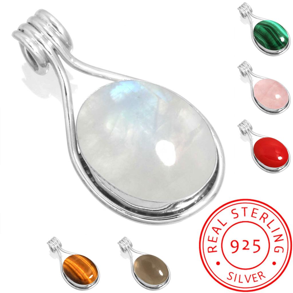 925 Sterling Silber Anhänger Damen Edelstein Handgefertigter Schmuck Neujahrsgeschenk Malachit Regenbogenmondstein Rosenquarz Roter Stein Rauchtopas Tigerauge Boho