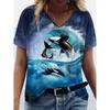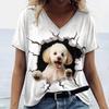 Sommer V-Ausschnitt 3D Tierdruck Top Modische Lässige Kurzarm Damen T-Shirts