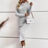 Damen Slim Fit High Waist A-Linie Langes Kleid Elastisch Gestrickt Jacquard Langarm O-Ausschnitt Frühlings-Herbstkleider S-XL