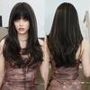 Professionelle lange, glatte Sakura-Pink-Perücke für schwarze Frauen, natürliche, locker geschichtete Kunsthaarperücken mit Vorhangpony, hohe Dichte, 26 Zoll