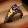 Vintage Chinesischer Stil Lotusblatt-Serie Natürlicher Amethyst Glücksbringer Geschlossenes Design Ring Für Frauen Hochzeitsparty Verlobungsring