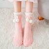 Herbst Winter Warme Korallenfleece Schleife Damen Socken Süße Lolita Plüsch Mittelhohe Socken Zuhause Schlafen Bodensocken Niedliche Socken
