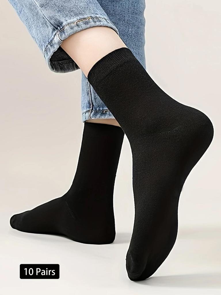 10 Paar klassische schwarz-weiße Damenstrümpfe Frühling und Sommer einfarbig dünne mittelhohe Damenstrümpfe